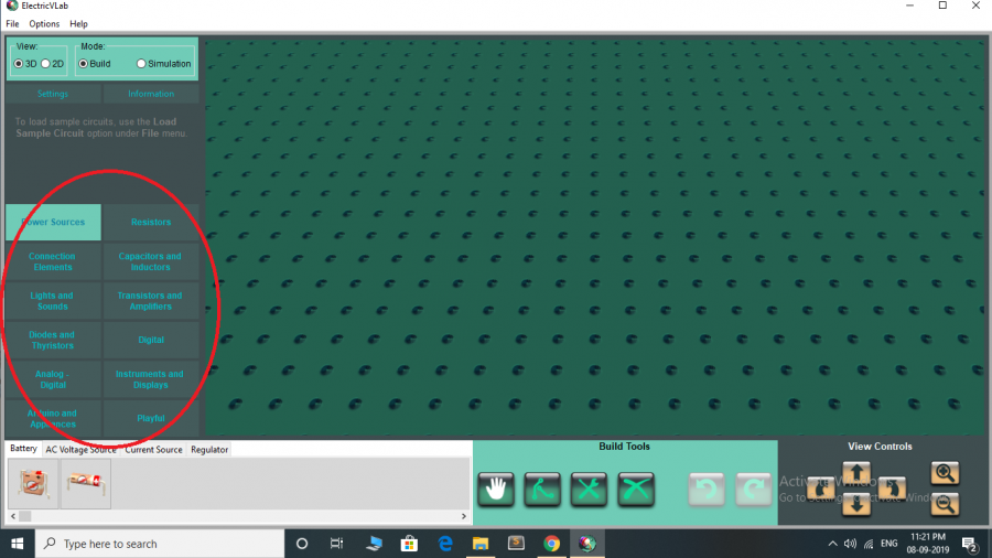 - Để bắt đầu xây dựng mạch mô phỏng, người dùng tiến hành di chuyển chuột vào thanh Menu phía trái giao diện phần mềm lựa chọn các thiết bị, linh kiện ảo.