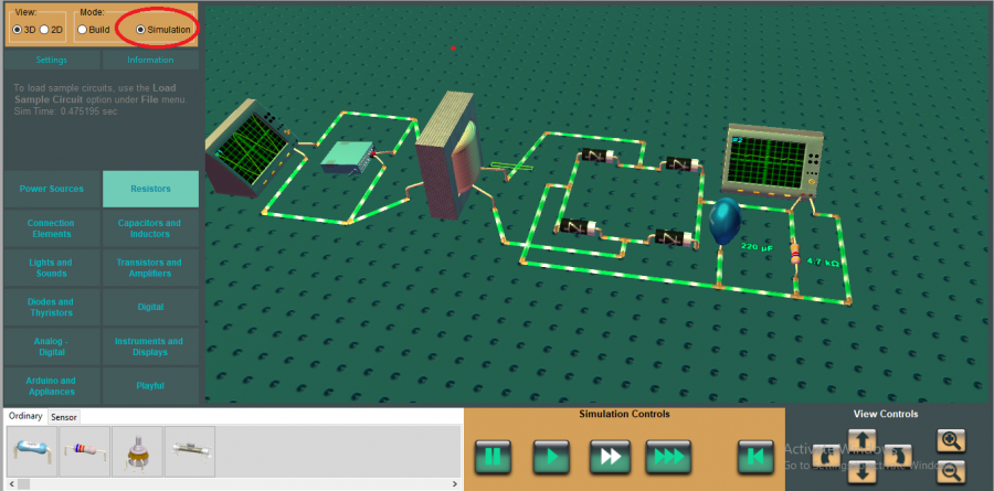 Các mạch điện được xây dựng bằng cách kết nối các linh kiện, thiết bị ảo bằng dây dẫn, hoàn toàn giống như việc xây dựng mạch trong thực tế. Các thành phần của mạch điện hoàn toàn có thể thay đổi giá trị, thay đổi vị trí một cách dễ dàng. Sau khi xây dựng xong mạch người dùng tiến hành chạy mạch và quan sát hiệu ứng 3D sinh động, ngoài ra người dùng có thể quan sát hiệu ứng dưới dạng 2D. Phần mềm còn cho phép sử dụng một số dụng cụ ảo như pháo hoa, đài phun nước, robot...nhằm tạo ra các mô hình mạch điện vui nhộn có tính giải trí cao nhưng vẫn đảm bảo được về mặt nguyên lý.