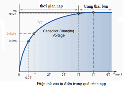 Ta thấy trong quá trình phóng điện thì thời điểm T=RC thì tụ điện còn 37% Vmax.