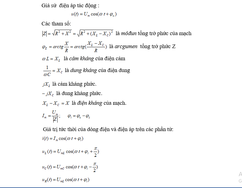 Bước 2: Dựa vào lý thuyết đã học, tính toán giá trị dòng điện trên toàn mạch và giá trị điện áp trên các phần tử R, L, C?