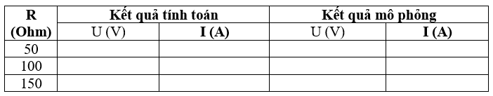 Bước 5: Từ bảng giá trị ở bước 4, đưa ra nhận xét về kết quả tính toán và kết quả mô phỏng. Đưa ra kết luận vê mối quan hệ giữa dòng điện và điện áp trên điện trở?