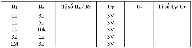Bước 3: Thiết lập các giá trị R1 và Rn hoàn thành bảng giá trị sau: