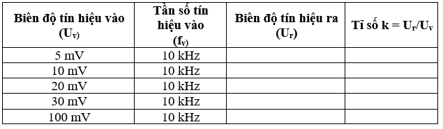 Bước 5: Thay đổi biên độ tín hiệu vào và hoàn thiện bảng giá trị dưới đây: