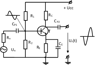 Hình vẽ dưới đây là sơ đồ mạch điện mạch khuếch đại tín hiệu nhỏ mắc cực E chung.