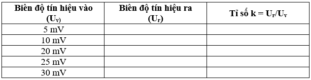 Bước 6: Thay đổi biên độ tín hiệu vào và hoàn thiện bảng giá trị dưới đây: