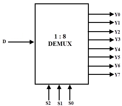 Mạch phân kênh 1:8 có 3 đầu vào điều khiển (A0, A1, A2) và 8 đầu ra (từ Y0 đến Y7), sơ đồ khối mạch phân kênh 1:8 như sau: