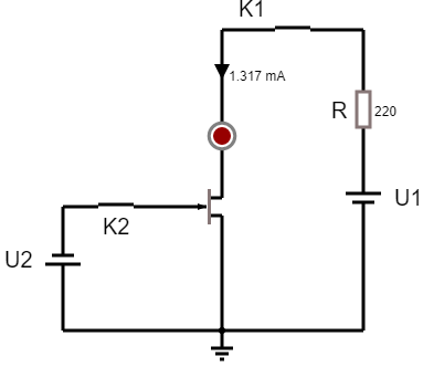Bước 2: Click Run/STOP để bắt đầu chạy mô phỏng, mở khóa K quan sát đèn LED và giá trị dòng điện ID trên sơ đồ mạch. Giải thích hiện tượng?