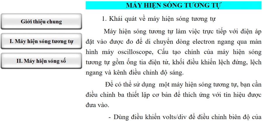 - Tab Các thiết bị đo: Giới thiệu và hướng dẫn sử dụng các thiết bị đo lường điện tử cơ bản như máy hiện sóng, máy tạo sóng, đồng hồ vạn năng...