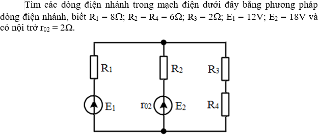 Phân tích mạch điện sau tìm dòng điện các nhánh của mạch