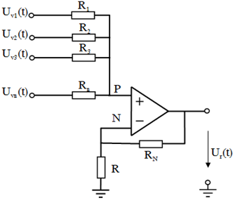 Ur = - ((RN /R1). Uv1 + (RN /R2). Uv2 + (RN /R3). Uv3 + (RN /Rn). Uvn)