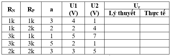 Bước 3: Thiết lập các giá trị RN , RP và ahoàn thành bảng giá trị sau: